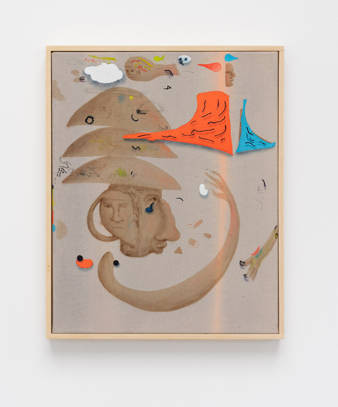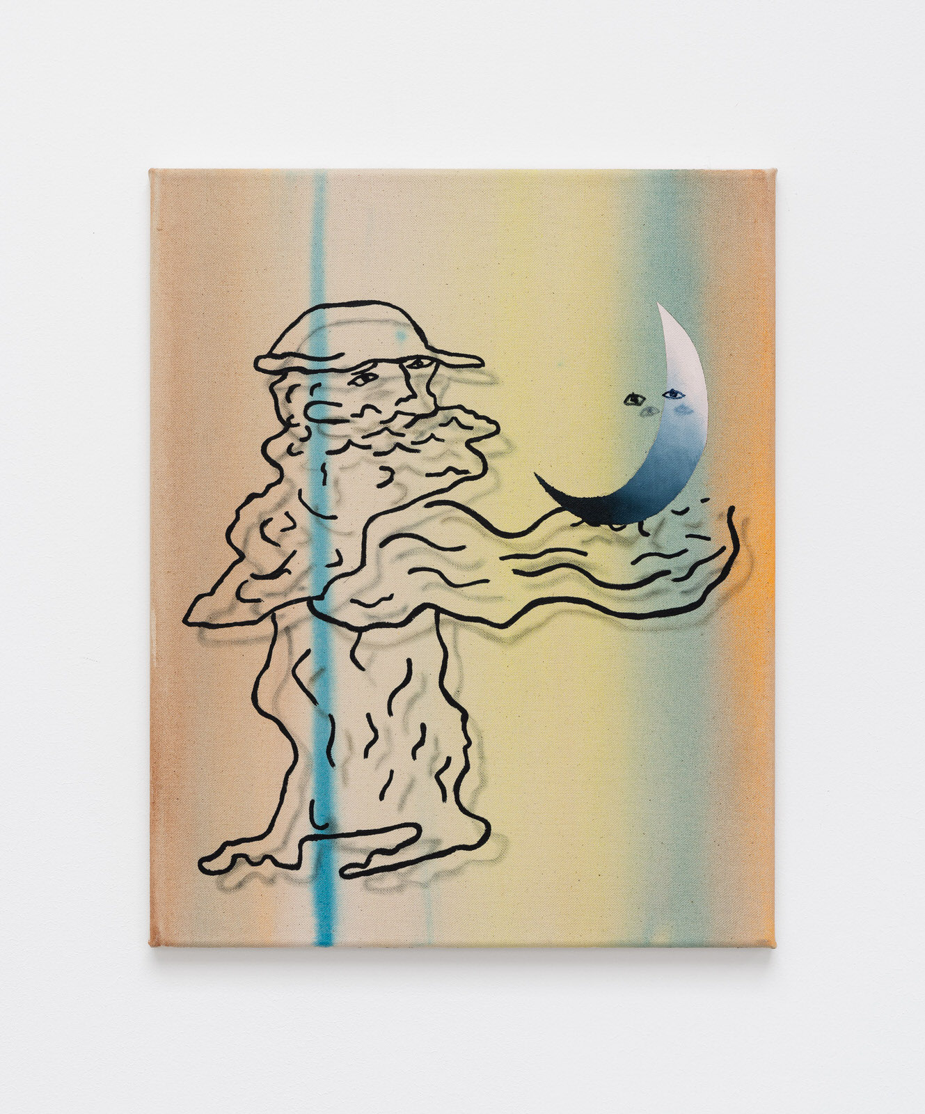 Watercolor, ink, acrylic and oil on canvas