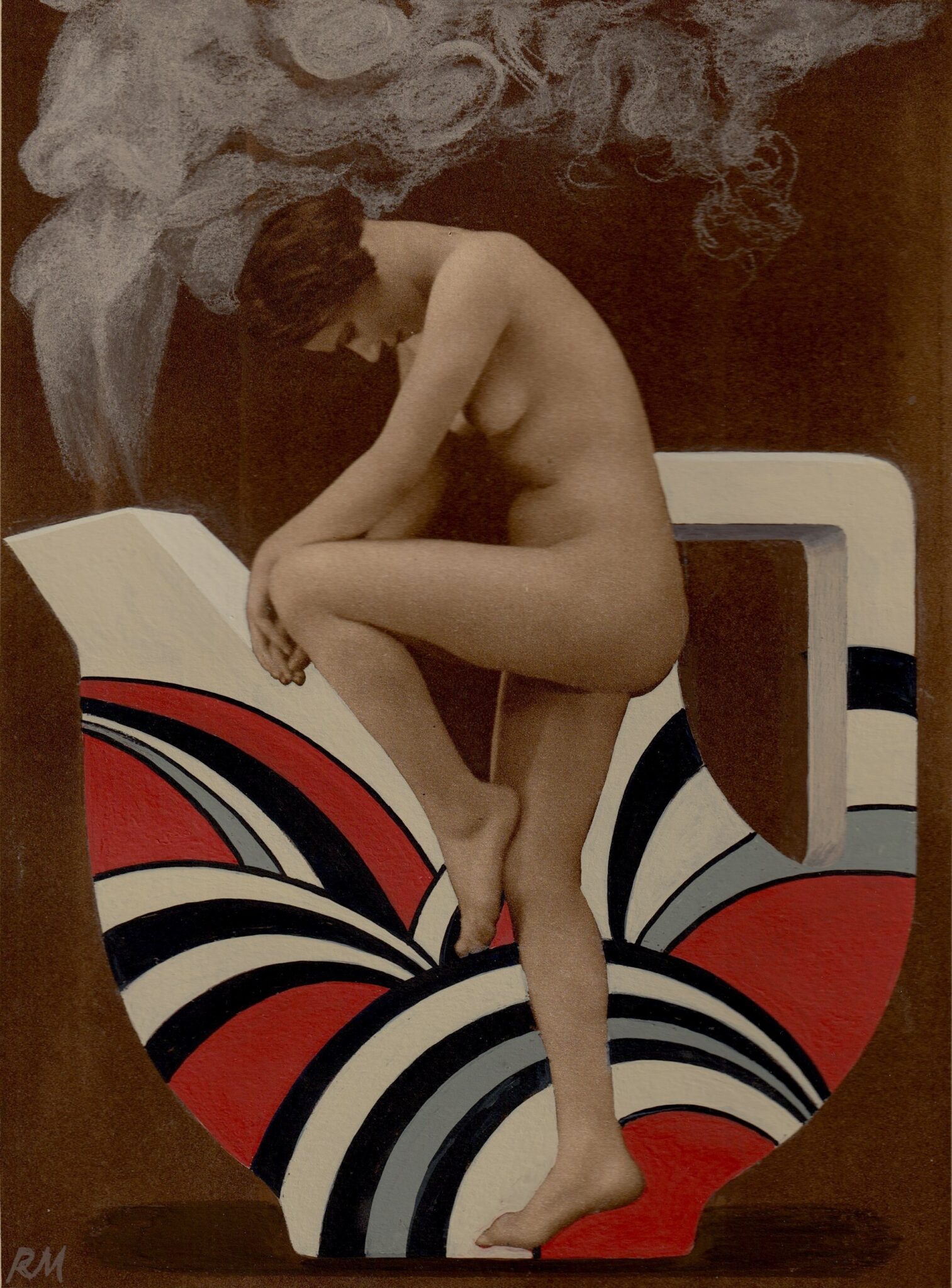Gouache with vintage heliogravure cut-out, ca. 25,2 x 36,5 cm