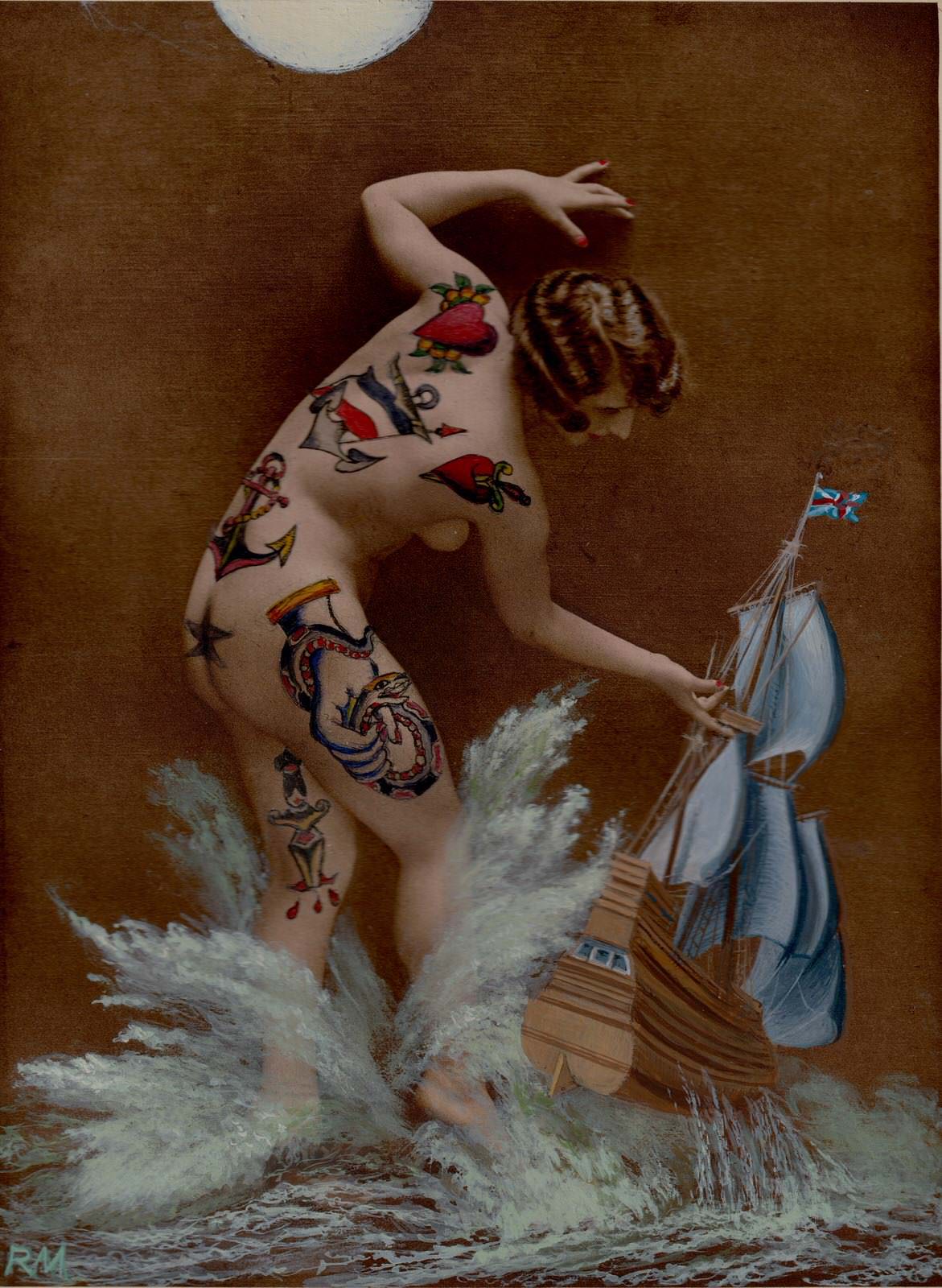 Following her art studies at the High School of Art & Design in New York and at Boston Museum of Fine Arts, Marten was active in the underground scene as a tattoo artist from 1973 to 1980, at a time when this form of expression was not yet legal in the U.S. In 1977 she did tattooing at the Musée National d’art moderne de la Ville de Paris during the 10th Biennale de Paris. Since the 1980s Marten, with her outstanding drawing talent, was hired as an illustrator by well-known publishers and music labels, fashion companies and major American newspapers and, for 30 years, collaborated with Jean Paul Goude. Her ability from the start to master all possible means of illustration has included the skillful use of overpainting and collage, techniques that have decisively shaped her current freehand work. For some years now, Ruth Marten has devoted herself fully to the fine arts, work that has since been shown in institutes and museums as well as private galleries in the U.S. and England, among others: Halsey Institute, Charleston; Skidmore College, Saratoga, NY; Palo Alto Art Center, CA; Museum for Natural History, NYC; Adam Baumgold Gallery, NYC and Hosfelt Gallery, CA & NYC.