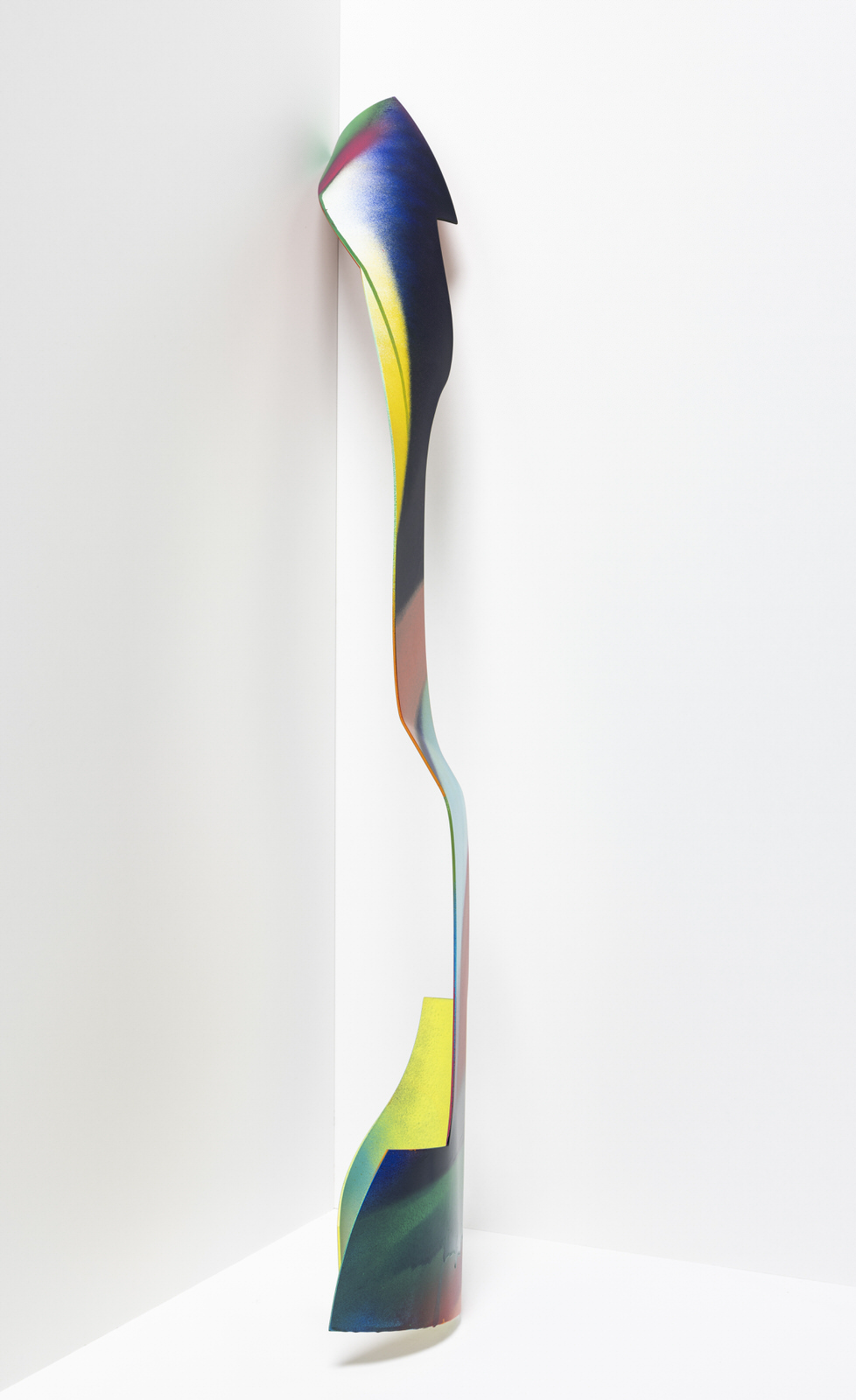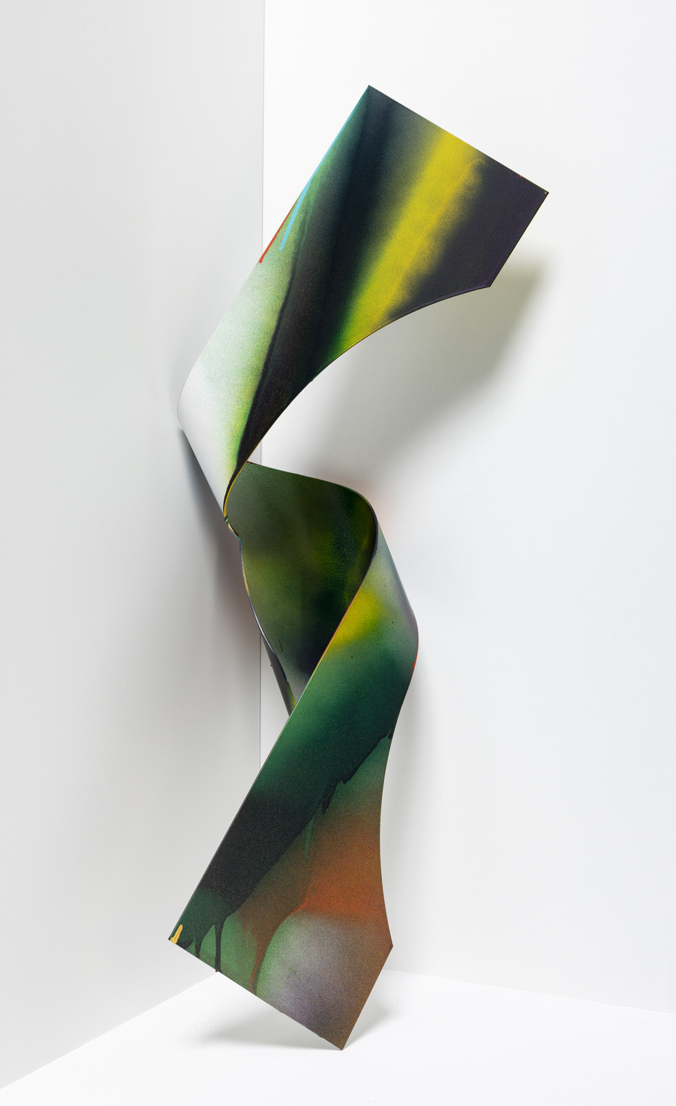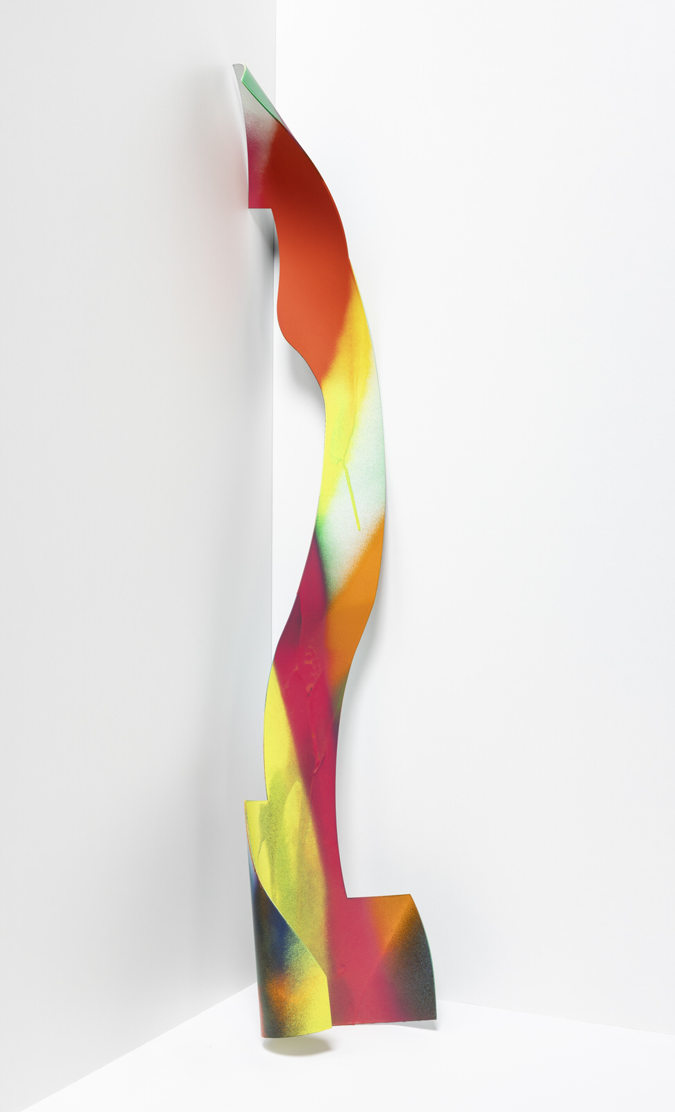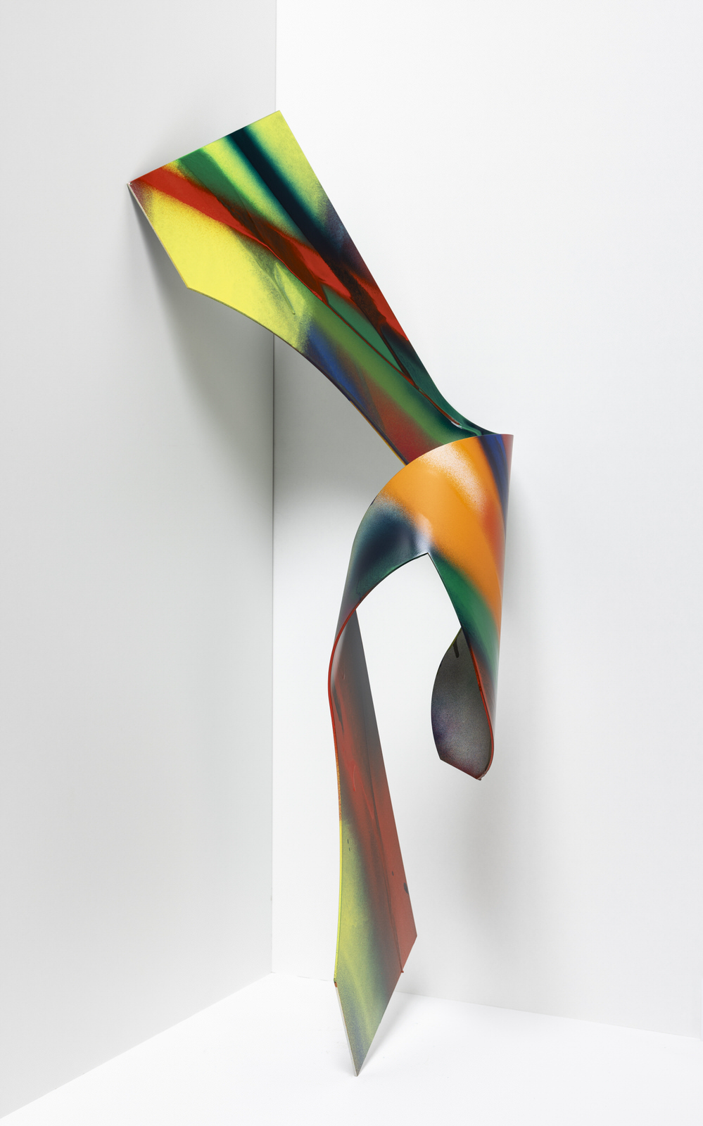 The edition created by KATHARINA GROSSE (*1961) in correspondence with her work Canyon (2022) consists of unique pieces produced in series at the Kunstgießerei St. Gallen art foundry and in the artist’s studio. The individual works are based on five different basic forms, which were shaped into a variety of spatial structures using a steel roller. Grosse then processed these structures using spray technology. Light and shadow serve to enhance the appearance of the objects dramatically.