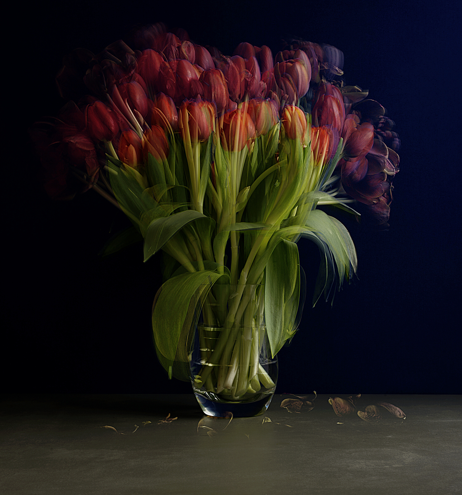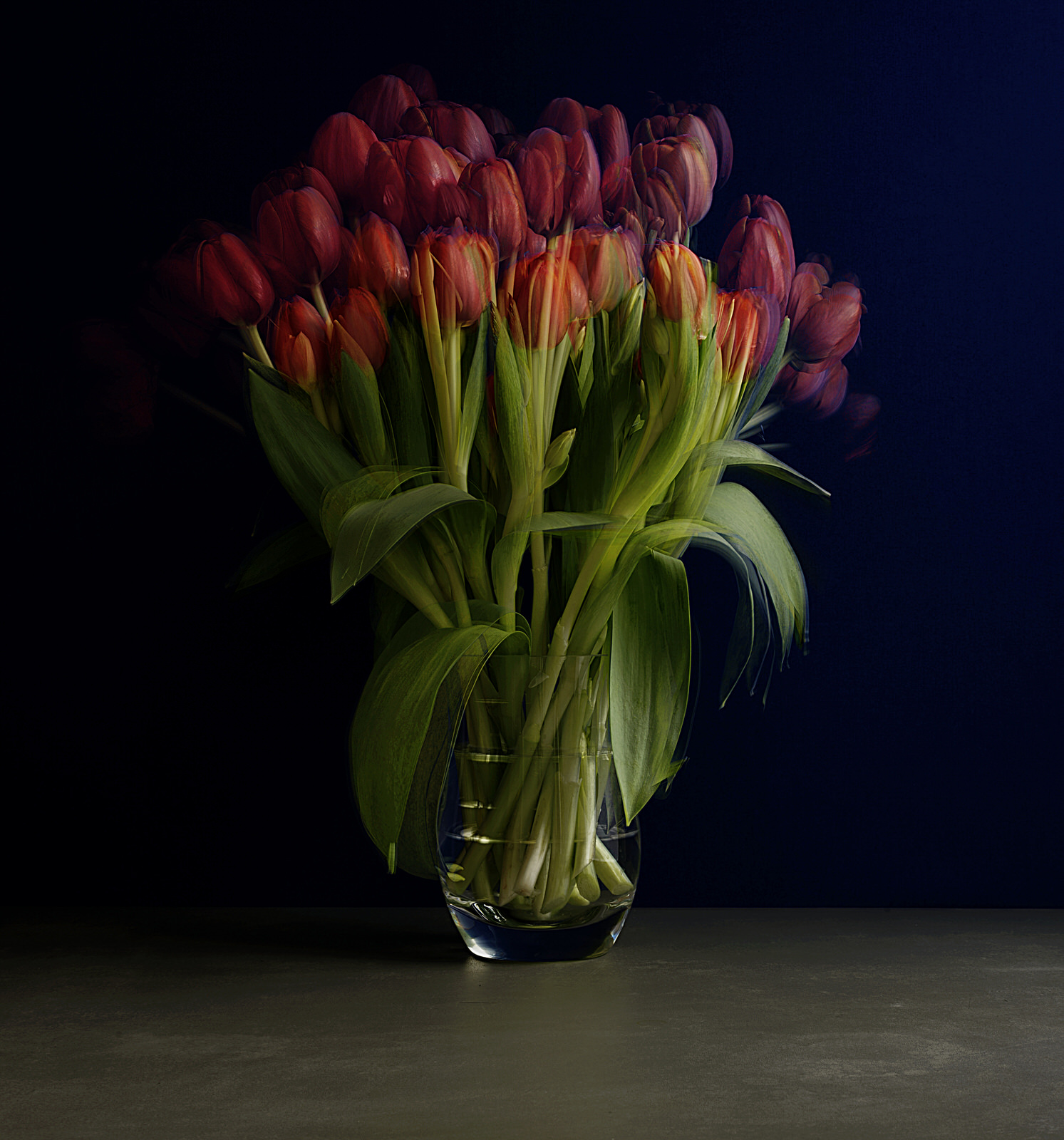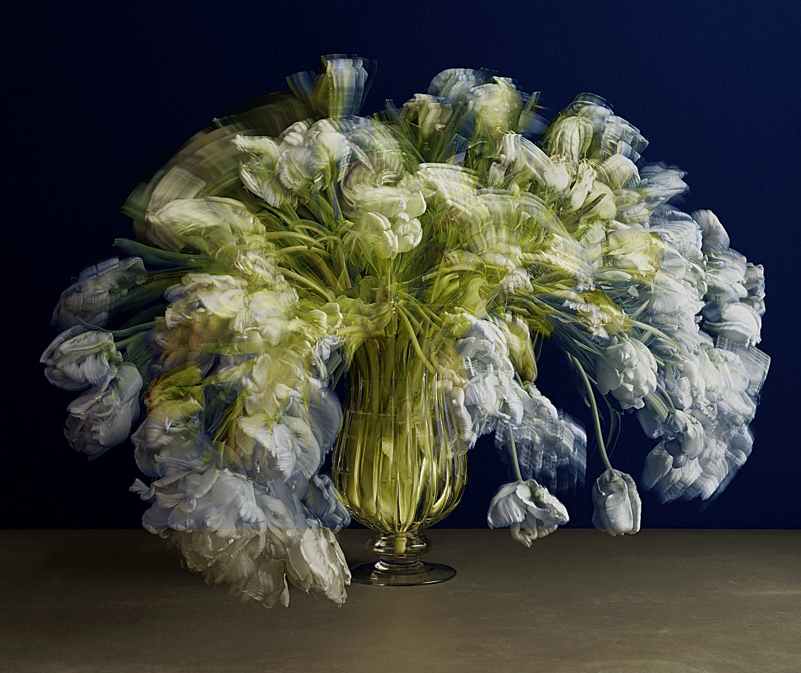 MICHAEL WESELY (*1963) is a celebrated master the extremely long exposure, in which he documents the change of objects over time. His bouquet still lifes are among Wesely’s best.known series of works. A unique triptych as well as unique single motifs are available, realized in the beautiful technique of UltraSec lamination on ESG white glass, which lends the color photographs a particular depth and intensity.