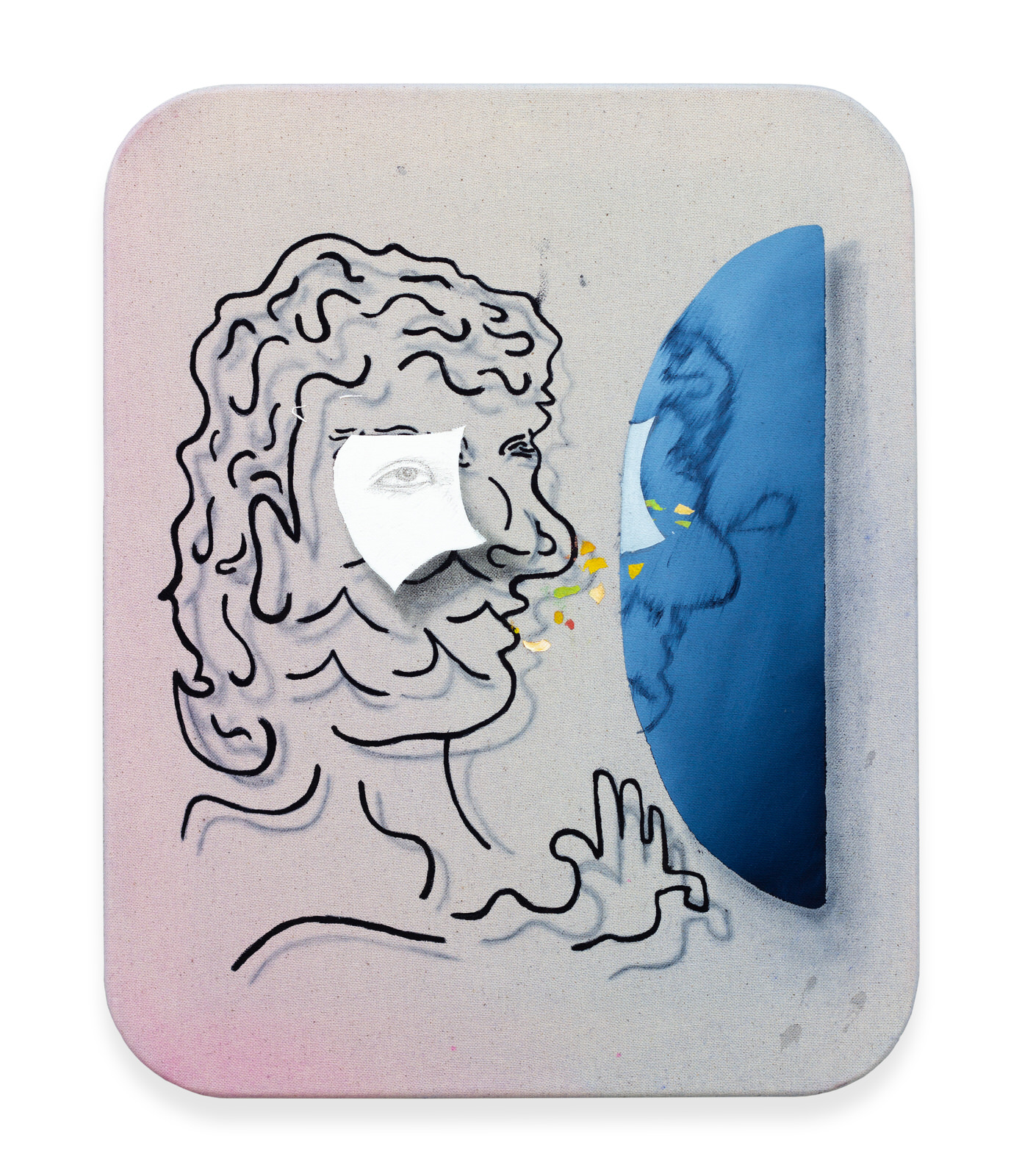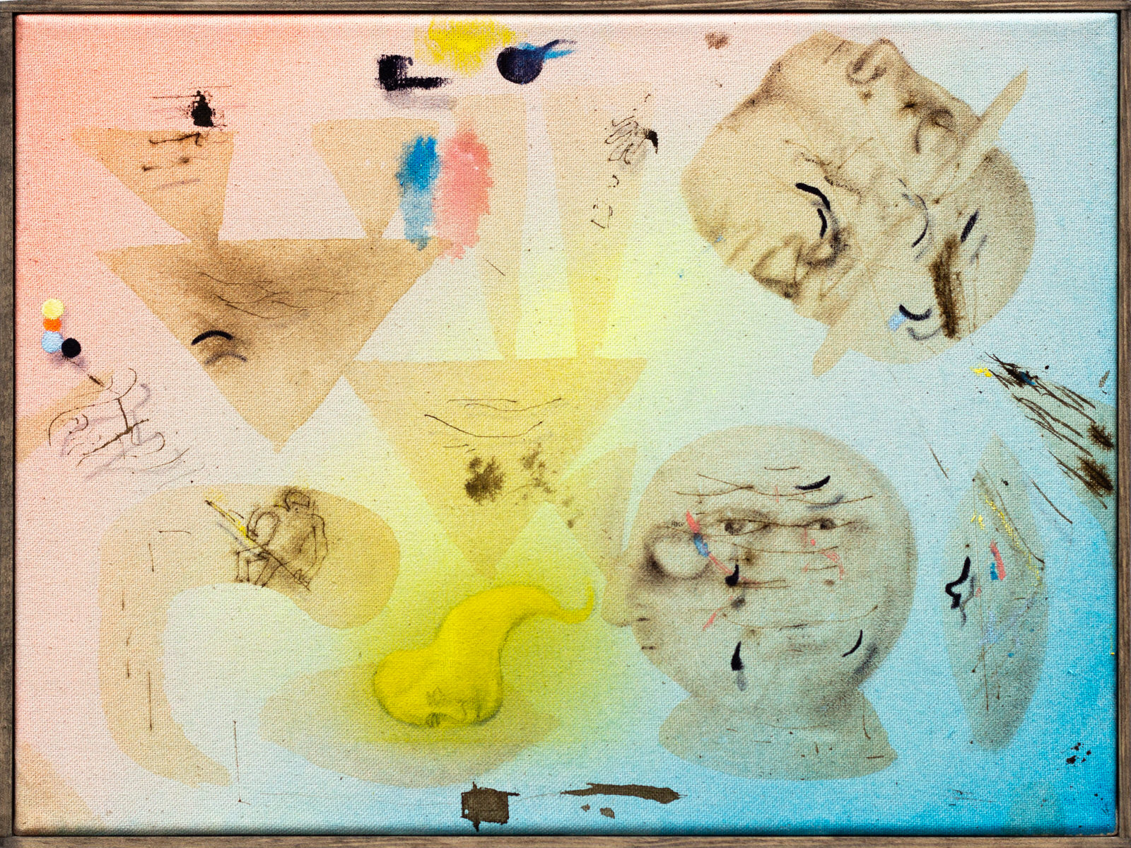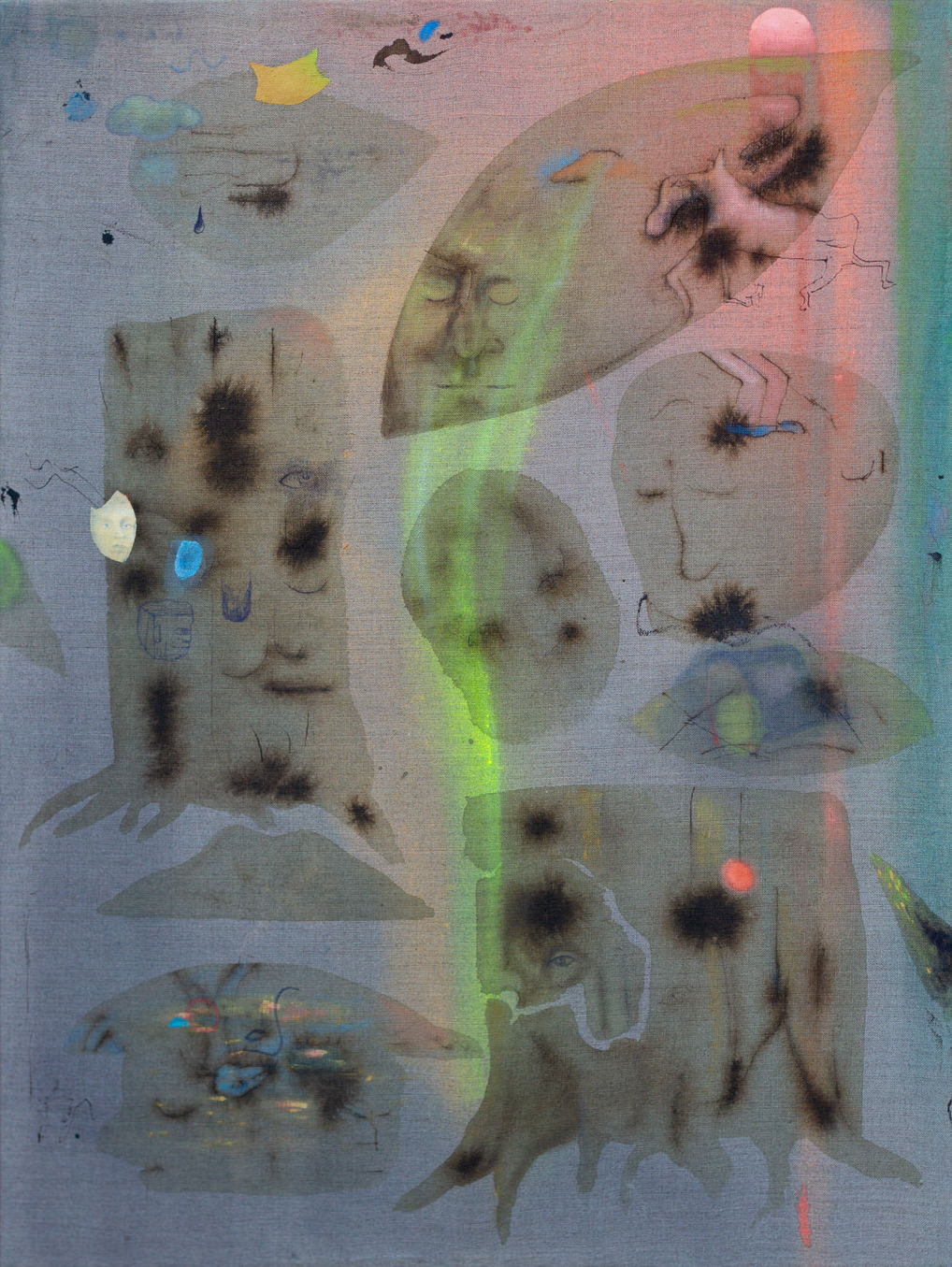 The viewer of Roy Mordechay’s painting feels compelled to read, recognize, connect and comprehend these clues and references, to discover what the faces large and small, the shadows, colors, inscriptions, motifs and symbols mean. One wants to make sense of it all, searches for meaning, for logic, an interpretation. And yet: everything is free-floating, open; all interpretations are possible and any story may be told.